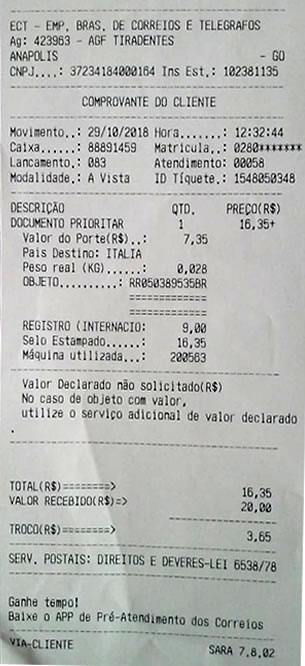 RETA INTENÇÃO, isto é, que entrou pela “janela”
