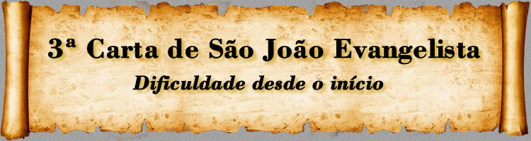 3.ª CARTA DE SÃO JOÃO EVANGELISTA Dificuldade desde o início (3 Jo 1-15)